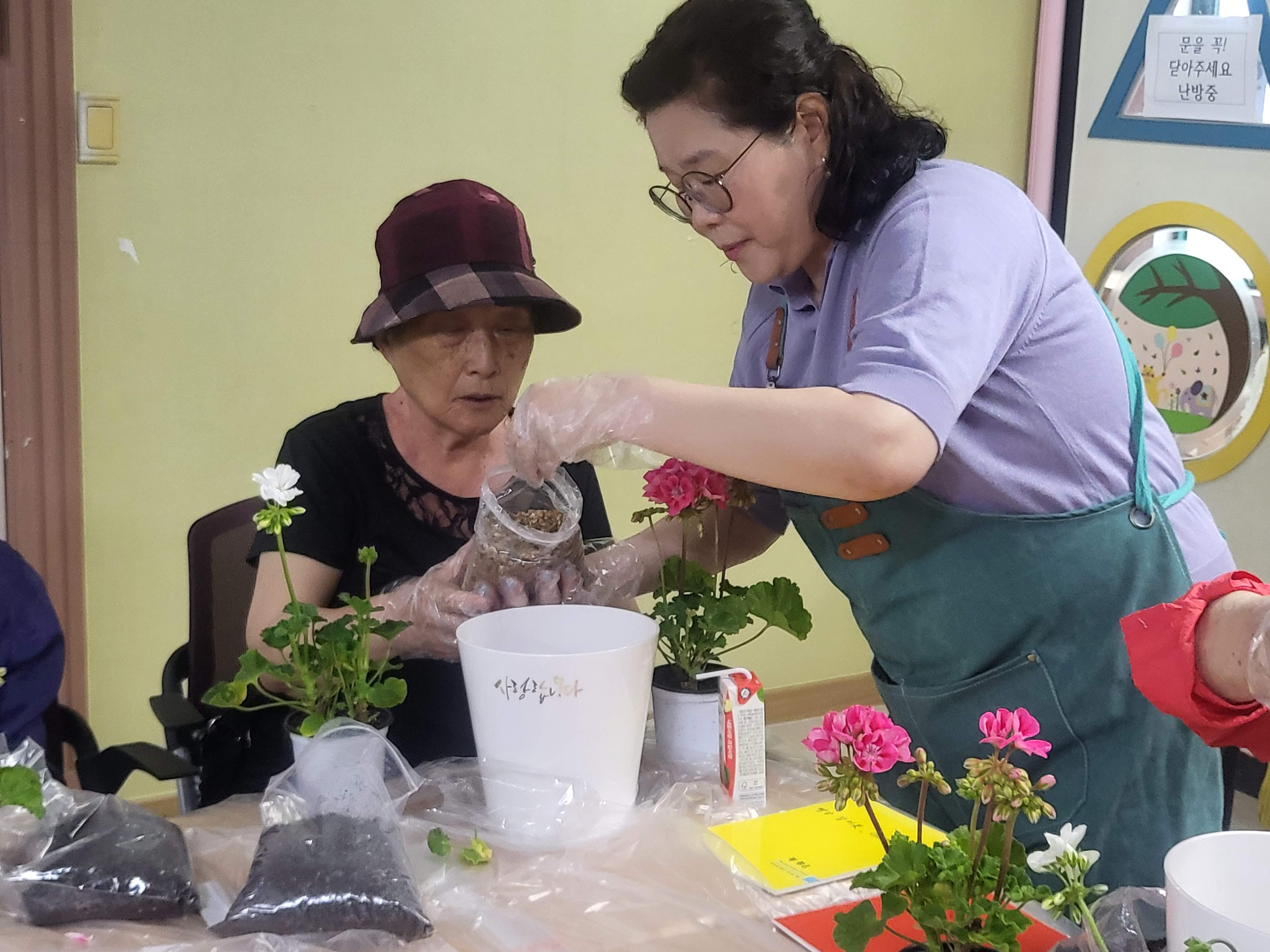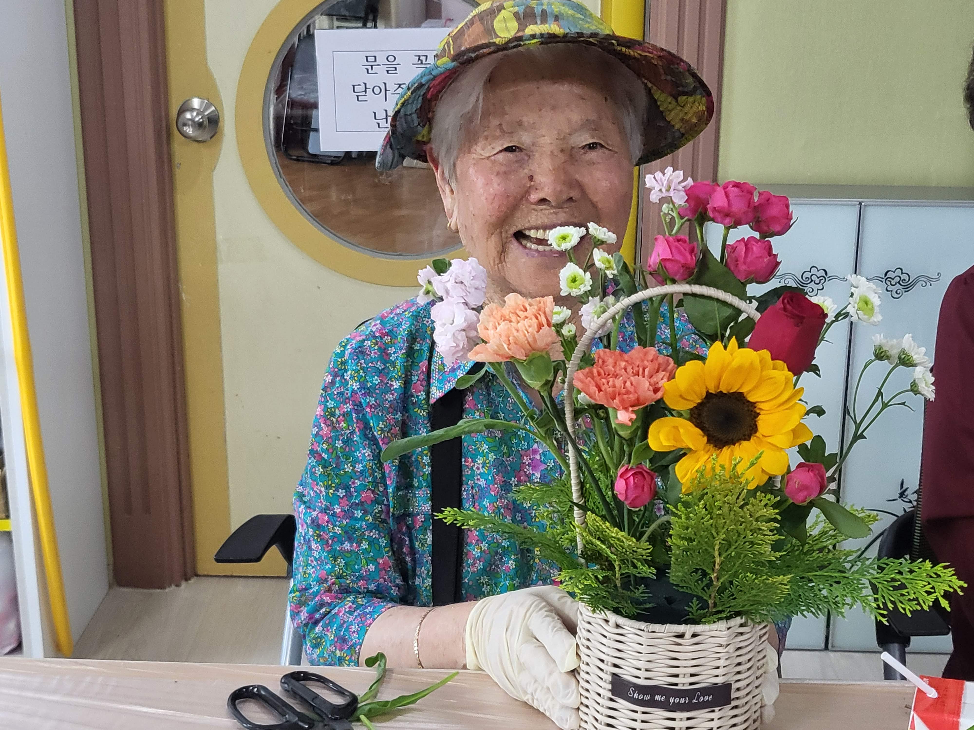 “태어나 처음으로 꽃바구니를 만들어 봤다. 더위에 집에만 있는 노인들 소풍 가듯 데리고 나와 꽃도 심고 맛있는 음식도 먹고 친구들과 만나 즐겁게 해주니 정말 감동이다.”라며 함께 하는 즐거움을 전하셨습니다.